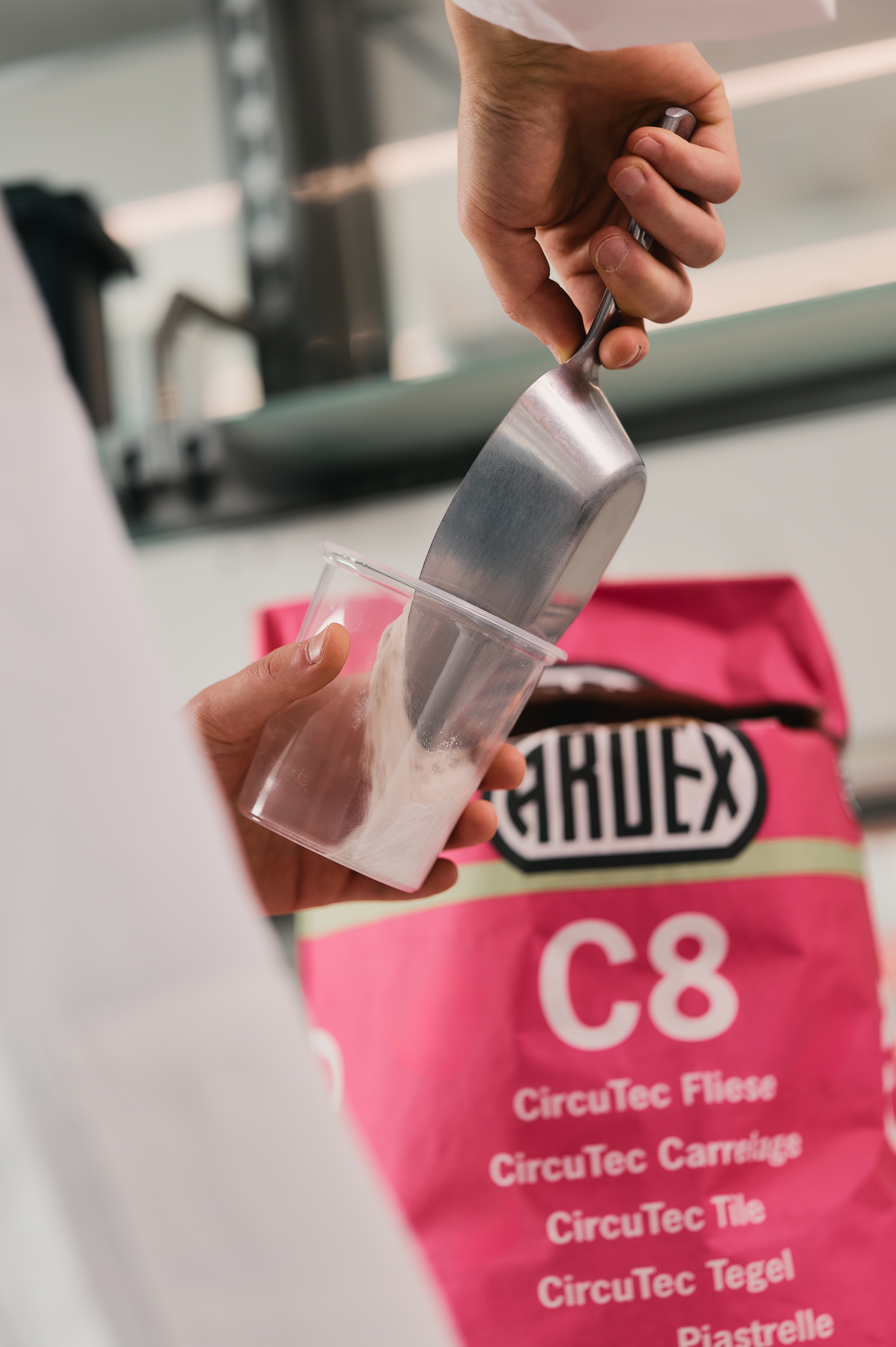 Diese Entwicklung passt auch perfekt zur „Building Tomorrow Strategie“ des Bauchemieherstellers: „Wir wollen beim nachhaltigen Bauen Innovationsführer sein“, sagt Dr. Patrick Pues, verantwortlich für neue Technologien und Ökobilanzierung in der Forschung & Entwicklung bei Ardex. „Und ARDEX CircuTec spart enorm viel CO2 ein. Zum einen natürlich, weil die Fliesen wiederverwertet oder recycelt werden können, zum anderen, weil die Circu-Tec-Produkte selbst mit deutlich weniger Zement auskommen. Dadurch haben sie einen kleineren CO2-Fußabdruck.“ So werden bei der Herstellung des Mörtels bis zu 70 Prozent weniger CO2 im Vergleich zum niedrigsten Branchenstandard für Fliesenkleber verbraucht.
